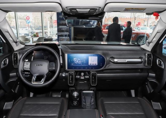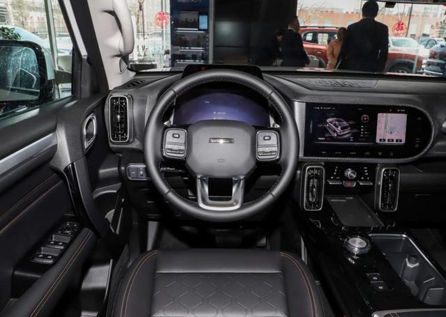 内饰部分,新车的内饰设计比较时尚,突出的是豪华以及科技感,当然,这款车也加入了不少复古的设计,副驾前门把手处还设计了铆钉外露。科技方面,新车提供了全液晶仪表,中控上也有一块尺寸为12.3英寸液晶屏,功能强大,触感灵敏,操作起来得心应手。方向盘是三辐式设计,两侧均配备了功能按键,方便驾驶员操作,新车的内饰整体还是让人很满意,介于城市SUV和越野车之间。