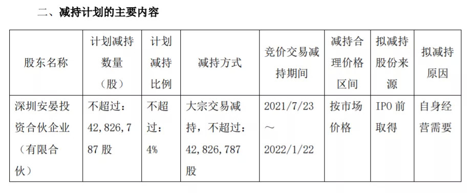 公司公告,持股2.05亿股(占总股本19.1067%)的大股东深圳安晏计划通过大宗交易方式减持不超过4282.68万股,占公司总股本不超过4%。