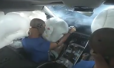 这次碰撞难度之大包含两大方面,其一大家都知道,25%小重叠本身难度不小,很多车型跪拜于此,其中不乏热门车型。其二带有夹角碰撞,更加趋向于模拟日常真实环境。我们开车行进中,意外碰撞事故常发生于一瞬间,任何角度的可能性都会遇到,这便要求车辆车身拥有极强的乘员舱框架钢材强度与被动保护能力。