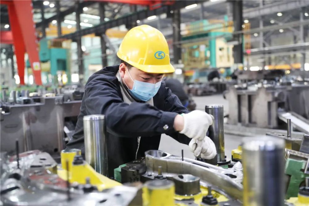 辽源格致汽车科技股份有限公司冲压车间工人检修汽车钣金加工模具。