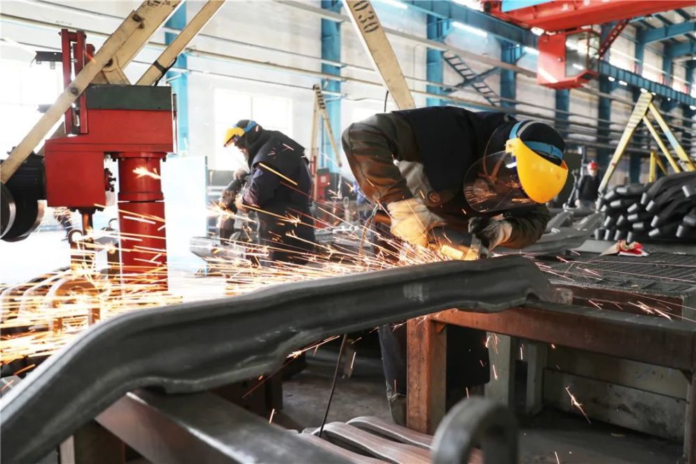 吉林省正轩车架有限公司年产300万套汽车轻量化总成生产车间,工人们正在生产车体部件。