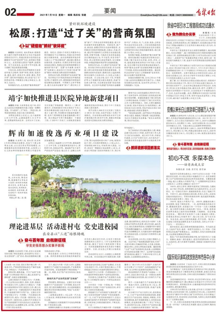 编者按:为回报习近平总书记视察一汽时的殷殷嘱托,省委省政府做岀举全省之力支持一汽创新发展民族品牌,创建世界一流企业的决定。7月15日,习近平总书记视察一汽一周年创新成果汇报会、中国一汽“十四五”发展规划纲要及技术创新战略发布会在长春举行。省委书记景俊海,省委副书记、省长韩俊出席会议并讲话。7月19日,《吉林日报》一版显著位置、大篇幅报道了辽源充分利用一汽“六个回归”机遇,打造一汽新能源汽车配套基地的工作成果,给人鼓舞,令人振奋。