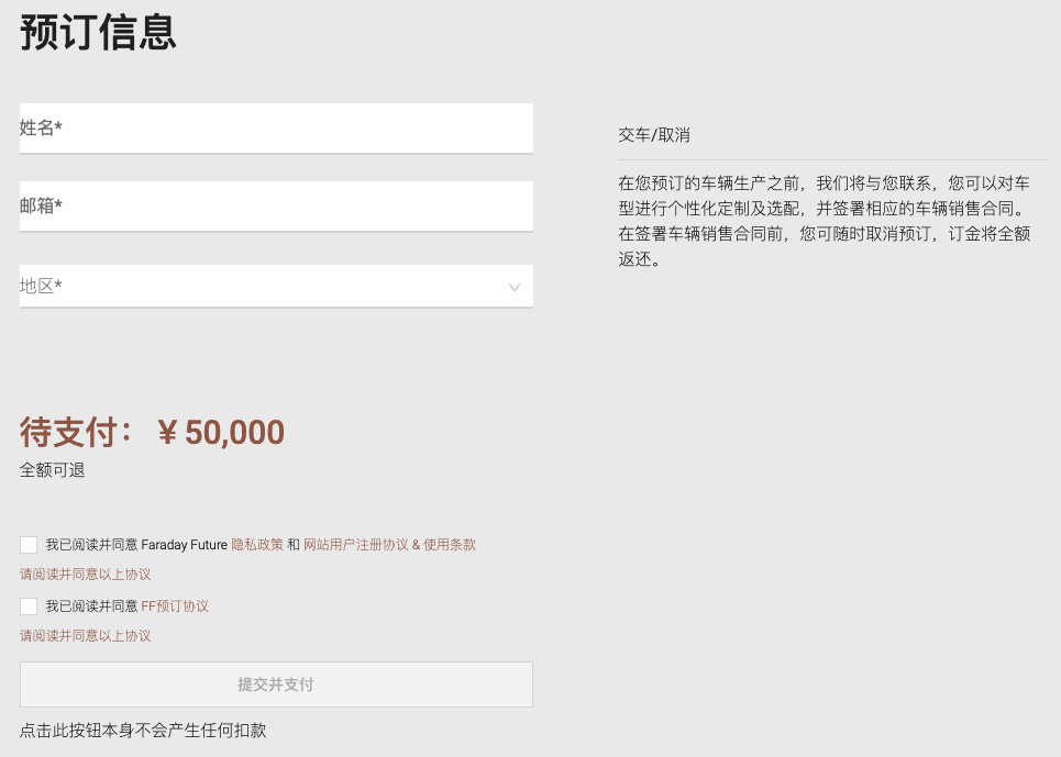 法拉第未来在其官网上正式开启了FF91的量产车型预订,订金为5万元,在正式签署销售合同前可随时选择退款。最终的量产车型将会在今年9月21日于美国正式发布。具体上市时间定在2022年上半年。