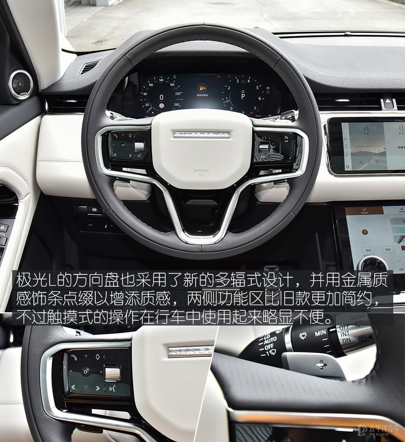 内饰方面,极光L拥有不同于标轴的方向盘款式,而中控布局和功能、材质、做工等均没有明显差别,双层的触控屏和触感极佳的真皮包裹依然向你诉说着它的身份。