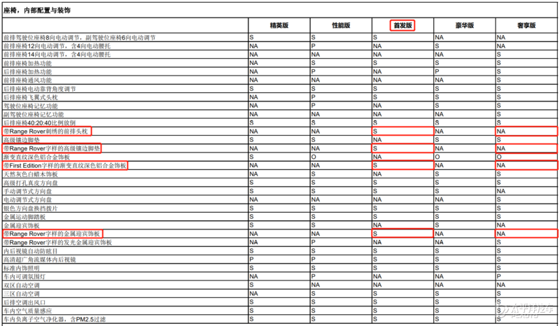 分析完极光L的配置,各位想要入手极光L的消费者已经找到了合适自己的车型,最后笔者想解释一下为什么重点推荐首发版,因为在官方提供的配置可以看出,首发版拥有独特的装饰,这些装饰甚至是顶配车型都没有提供的,而且目前并不支持选装,想象一下花着中配的钱,就能买到连顶配都没有豪华装饰,是不是很值?(注:S表示标配,NA表示未配备)