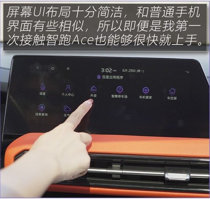 智跑Ace的内饰风格很独特,并没有使用常见的对称式设计,不对称式布局反倒是正合我意,千篇一律的东西我一般都不太喜欢,因为很容易让人产生审美疲劳。