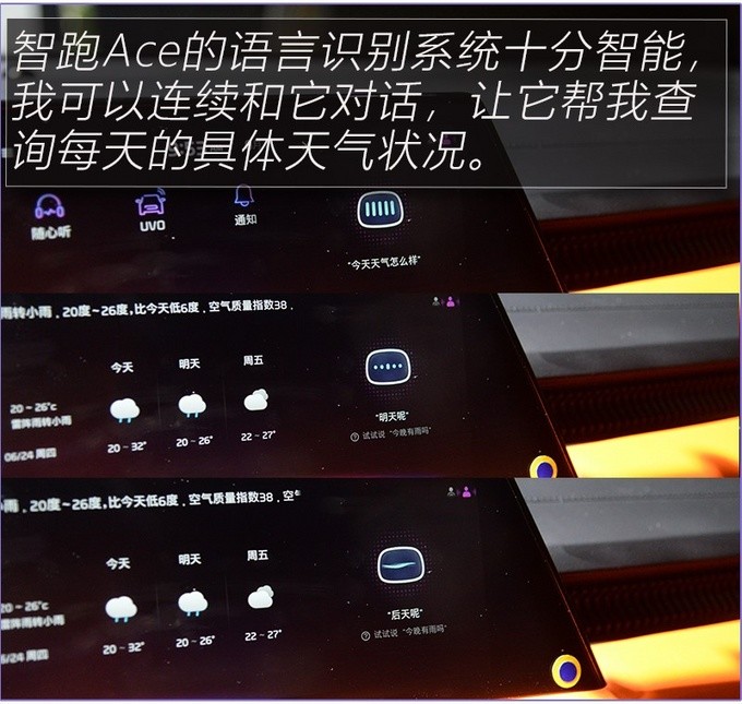 智跑Ace的UVO账户可以绑定多个手机蓝牙钥匙,除了靠近车辆自动开门和启动发动机外,同时还会将空调、仪表盘主题等多项配置,提前调整至我之前的设置偏好,我觉得这是非常人性化的设计。
