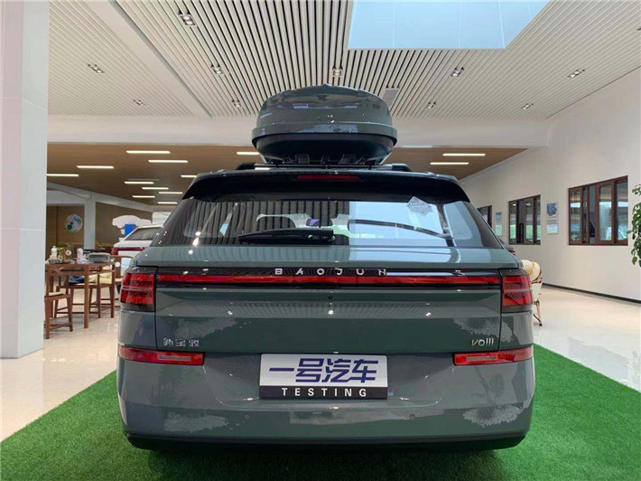 一早来到新宝骏4S店,在门口的左侧便能看到有一台新宝骏RC-5与一台新宝骏Valli试驾车停在一旁,其中在展台的二层笔者被一台配色为“杭苏青”的新宝骏Valli所吸引,该车型的顶部还装配了一款流线型设计的行李箱,彰显出其自由舒畅的休旅气息。尺寸方面,行李箱长宽高分别为1980/780/335mm,容积可达500L。值得一提的是,加装行李箱后依旧可通过2.2m的限高标准。