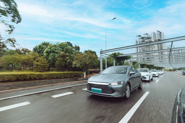 在巡城试车环节,秦PLUS DM-i将龙颜潮车的魅力和智能座驾的周到诠释得淋漓尽致。沿袭Dragon Face设计语言精髓,秦PLUS DM-i的进取之姿一路吸睛无数。