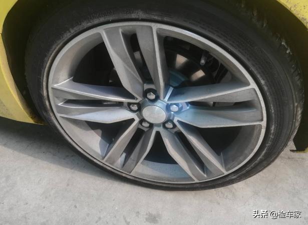 所以最后也没能上架底盘,我也只能是在平地上简单的看了一下。右前轮胎有损伤,经常跑高速的话为了安全起见还是建议换了,轮胎日期是7年第四周的,除右前轮胎以外可继续正常使用,刹车盘片磨损是符合表显里程。