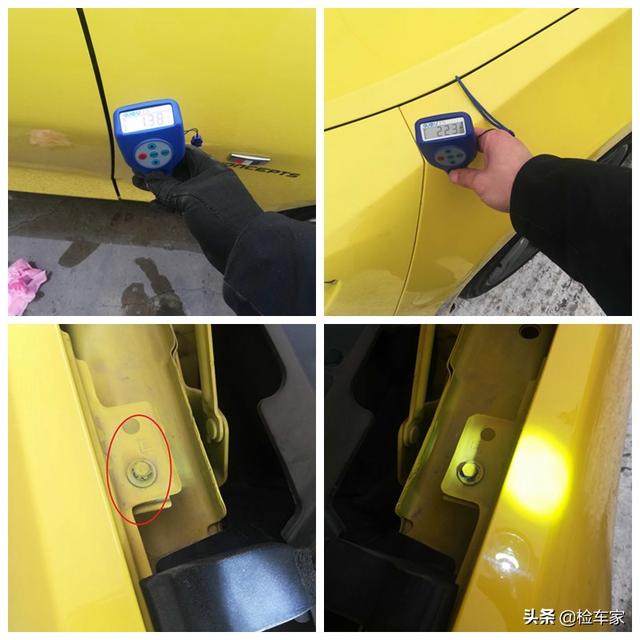 首先对车辆的外观进行初步的检测,发现前杠边缘及接缝处棱角用手触摸,可以感觉到二次喷漆后残留的颗粒,根据检测基本确定了前杠存在喷漆的现象,后杠存在一条划痕,这个可以抛光试着处理一下。