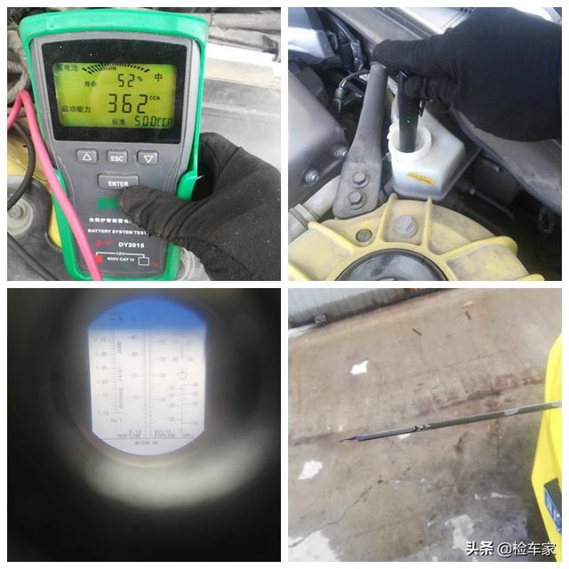 接下来检测全车的油液情况,油液目前也都处于正常状态,只是电瓶有些亏电,怀疑是车辆停放时间过长导致的,正常行驶充电即可~