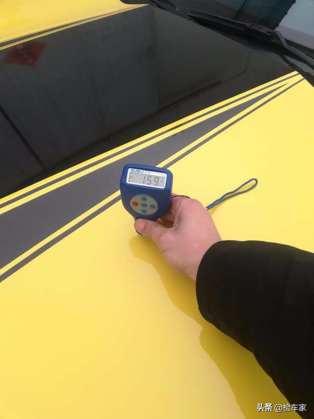 初步对机盖检测漆面数值显159um,美系车影帝我检测的也不少,整车的漆面数值比较厚,大概的漆面数值范围在130-150um之间,低于或超出此数值均不正常。