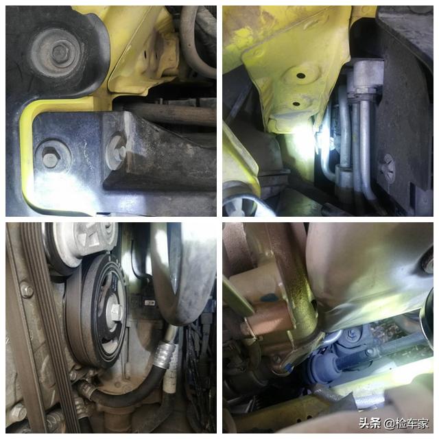 闲话不多说,还是看看机舱的具体情况,纵梁及水箱框架没有变形和钣金修复痕迹,发动机附属件没有拆卸,机爪垫固定螺丝没有拆卸,说明发动机没有过吊装维修。