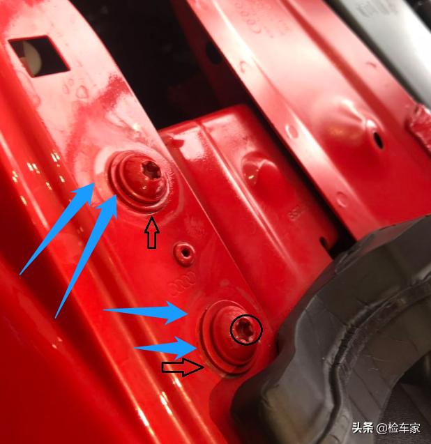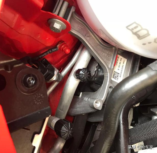 两侧的减震器塔顶螺丝经检测也未发现异常,螺丝无拆洗错位,减震塔顶漆面平顺,无褶皱和敲打修复的痕迹,可以进一步排除两侧的严重事故撞击。