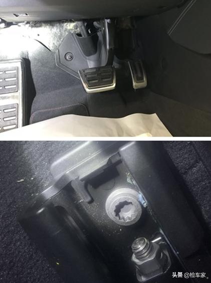 仪表台底部的方向管柱及座椅固定螺丝均没有异常拆卸和锈蚀及二次打磨的痕迹,各个部件的螺丝均为原车出厂状态,无任何拧动及配件更换的迹象,根据检测如果车子一旦泡水翻新的话是要进行拆卸的。