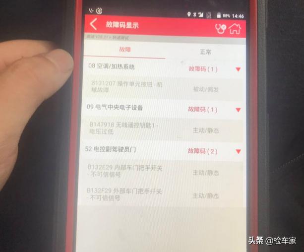 最后一步是对车身系统内部进行检测,经检测发现目前存在多个故障码,不过都不是大问题,目前对使用没有任何影响,空调按钮有偶发故障码,和副驾驶车门的电控信号,建议及时去4S店进行详细检查,对症下药进行维修。钥匙没电了自己换一个电池就可以。只要不去4S店换,几块钱的电池就可以解决~