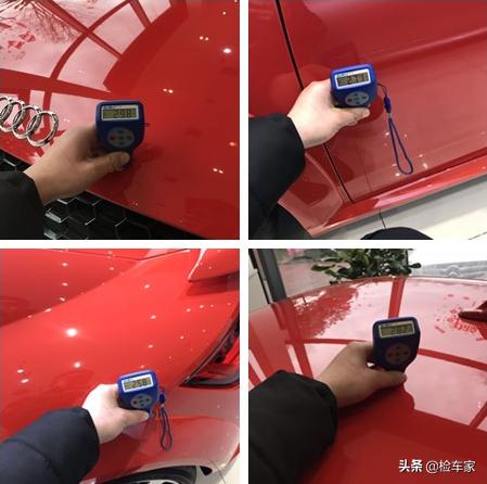 首先进行外观的检测,整车的外观在贴有隐形车衣的前提下在灯光下显得特别漂亮,整车外观的漆面数值均在250um-300um左右,上下没有超过三分之一属于原车出厂漆面。