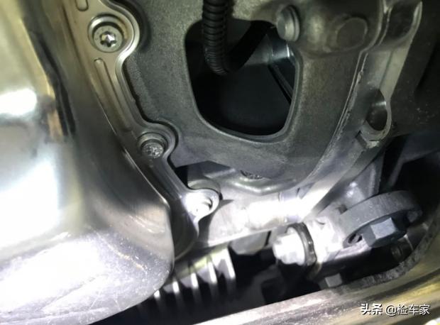 发动机右上侧的支架的出厂日期为2017年10月,早于车子的出厂日期,同时固定螺丝无拆卸拧动及错位的痕迹,基本确定支架为原厂,也初步排除了发动机吊装的嫌疑。