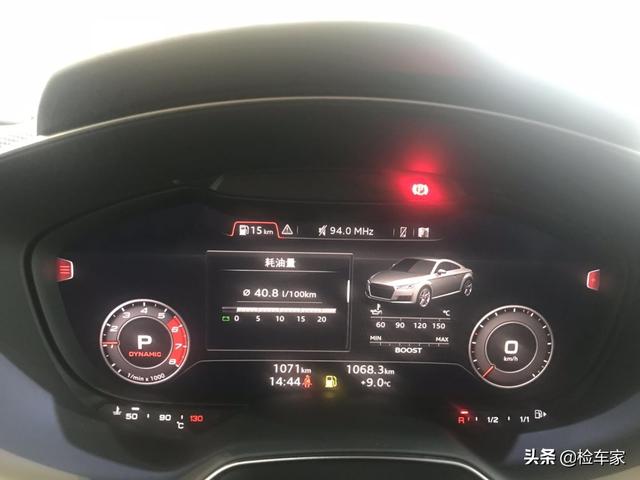 车子启动后仪表盘无故障灯亮起,表显示里程1071公里,根据综合检测基本确定没有调过表,12.3英寸液晶仪表盘有两种显示模式主题以及倒车影像、车载导航以及多媒体等功能。另外,转速的提升,右侧的功率和扭矩表还会有红线跳动,刺激驾驶者的肾上腺素。仪表盘的功能全部检测一遍,都可以正常使用,就是电子配置功能过多,有点太复杂了。