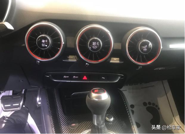 驾驶舱内的成色看上去和新车没什么两样,没有明显的磨损痕迹,奥迪TTRS的内饰风格很是简洁,战斗气息浓郁,做工细致,手感不错。不过我还是要仔细的检查一下,看看这台车有没有下赛道豁过的痕迹~