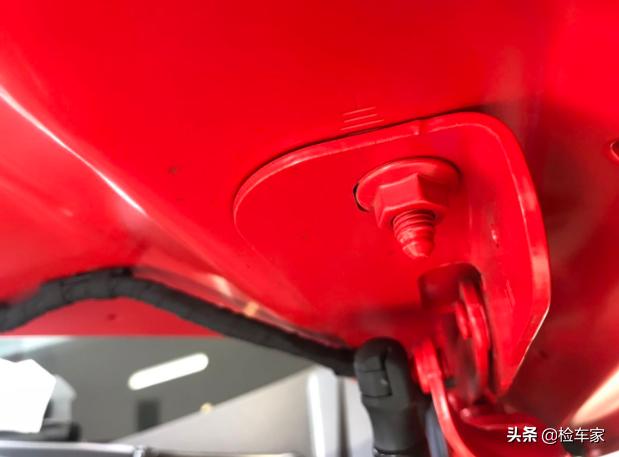 机盖的固定螺丝经检测没有发现异常的拆卸拧动错位痕迹,螺丝表面也不存在二次喷漆后残留的飞漆,结合外观的漆面检测基本确定机盖为原厂,排除了车身前侧和两侧的严重撞击事故,如果说撞击严重的话机盖肯定会变形受损而进行修复或更换。