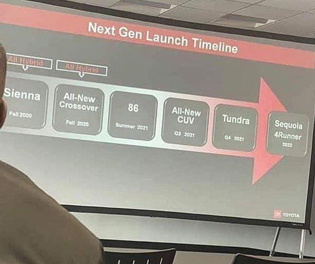 另外,丰田新一代塞纳和一款全新SUV将搭载混动系统,将在今年秋季发布。全新SUV和新一代Tundra皮卡则分别将于2021年第2和第4季度发布。新一代4Runner车型将于2022年发布。