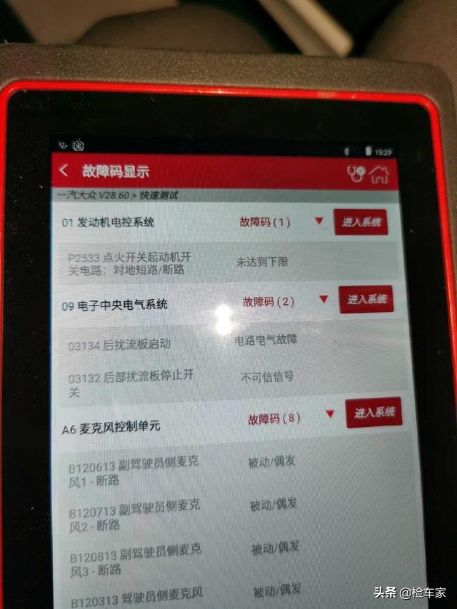 OBD检测结果发现此车发动机和车身电脑系统均有不可靠信号和异常存在,OBD检测再一次此车是存在问题性的。