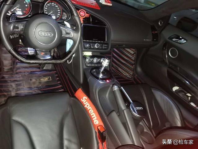 这台奥迪R8外型时尚、动感,只是宽大的尾部略显笨重;做工精细,配置丰富,多处细节设计比较人性化;作为一款赛车,R8表现不错,没有别的超跑外观如此夸张!低调的外观隐藏着不一般的动力和超跑的各种性能,真让旁人羡慕呀。好了,咱们一起来给这位粉丝检测吧。