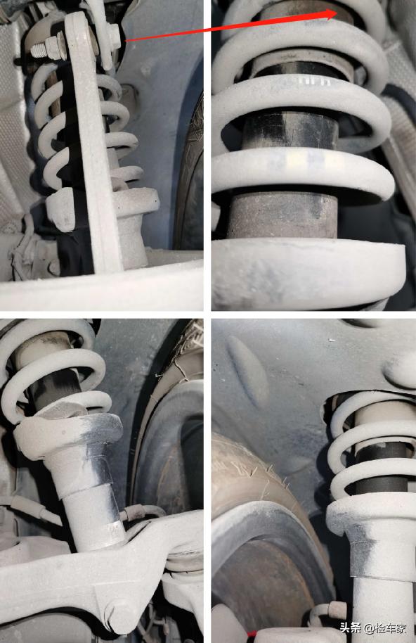 检测减震器和悬挂的时候发现后面的两根减震器有一点渗油,看样子才刚刚开始漏,这个情况完全没有必要换,还可以继续使用,但是要告知客户谈价格的时候有利啊。