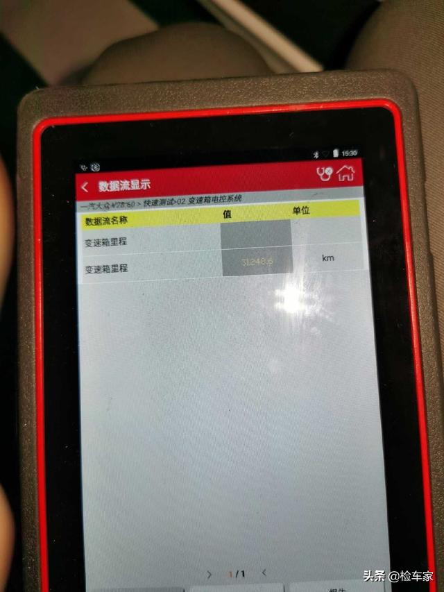 随后小强读取了变速箱的总行驶里程3万1千多和仪表也是对的上的,调表都是调仪表显示的公里数,变速箱里程还是可信的,同时内饰磨损各方面也比较符合。内饰检测完成,基本没啥毛病可挑,几百万的东西放在这里,各方面都是杠杠的。