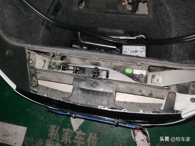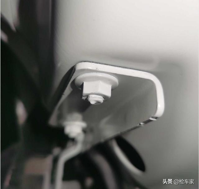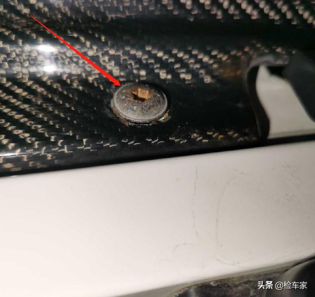 检测到这个后保险杠的时候也发现这个固定螺丝有拆卸痕迹并且螺丝都生锈了,后保险杠也没有明显喷漆痕迹,但为什么要拆?