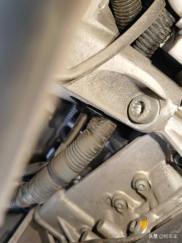 这里是变速箱支架固定螺丝没有拆卸痕迹,这里没有拆卸就说明变速箱没动过。很完美!