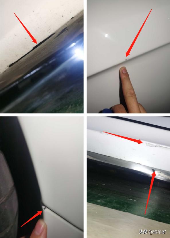 虽然没有车身没有喷漆,但是这个划痕和瑕疵也不少,这些部位要是后期修复也是不小一部分费用啊,记下来一会和客户说一下。