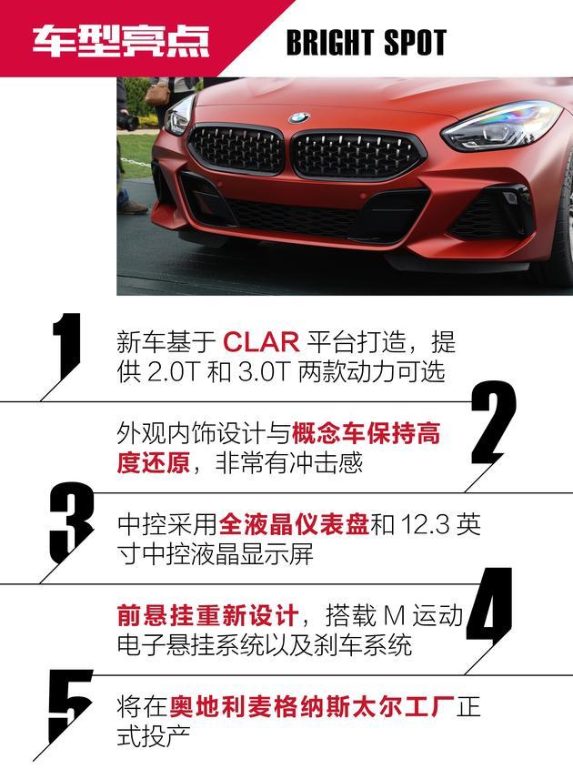 动力以及底盘方面,全新宝马Z4搭载2.0T涡轮增压发动机(B48系列高/低功率)、3.0T涡轮增压发动机(B58系列)。