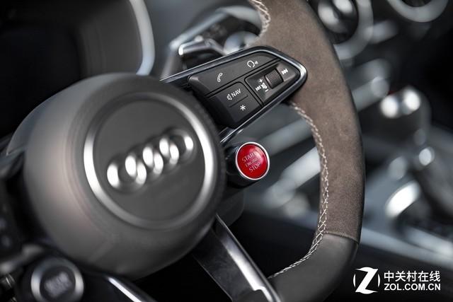 然后说说内部,内饰的话,TT RS还可以,不能算好,也不能算差,毕竟不是豪华车。内饰中印象最深刻的就是启动按键,设计在方向盘上,十分妖娆。