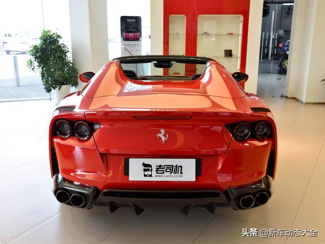车尾设计上,法拉利812看起来非常激进,双边共四出的排气布局搭配四个熏黑的圆形尾灯,视觉上独具特色,冲击力十足。