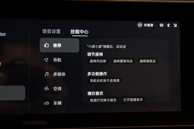 在车机系统中,语音的「技能中心」里面,包含有「推荐」、「导航」、「多媒体」、「空调」、「车辆」等五个标签,每个标签中又有N多细分项目,如果想全部了解,着实需要花费一段时间去学习。