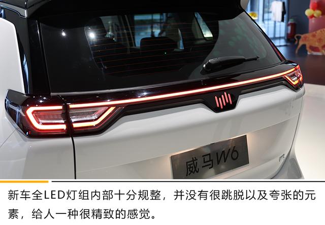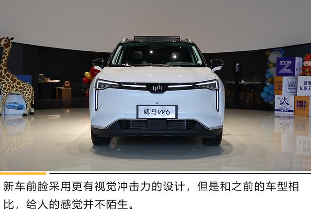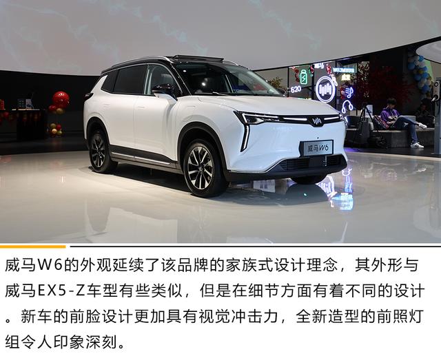 威马W6的外观延续了该品牌的家族式设计理念,其外形与威马EX5-Z车型有些类似,但是在细节方面有着不同的设计。该车型的前脸设计更加具有视觉冲击力,全新造型的前照灯组令人印象深刻。