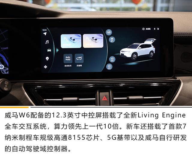 与此同时,威马W6率先搭载的高通SA8155芯片,算力提升8.5倍、图像处理能力提升20倍,在3D图像和特效处理等方面获长足进步。