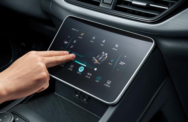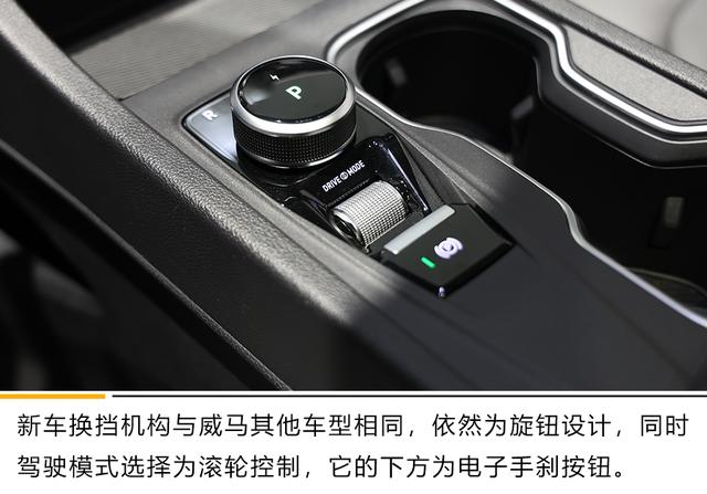 威马W6的并没有采用之前两款车型的独立液晶仪表+可旋转中控屏的搭配,而是采用当下流行的双联屏设计,同时中控台下部也使用了全新的i-Touch屏幕,用于控制空调系统。三屏化的设计将信息、娱乐、空调控制平台进行了视觉化分区,创造三屏一体的流畅交互体验。