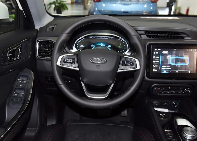 内饰方面,如果外观稍有改变,那么内饰对比下来几乎没有太大的两边,不过设计感还算不错,方向盘采用了圆底设计,上面集成了一些功能性按键,操作也很方便,中控屏上面的大屏幕看起来还算不错,有一种ipad的感觉,另外车款中控设计简洁,并且取消了传统的档把设计,空调控制按键也是旋转按钮的方式,另外艾瑞泽e的空调出口较为个性一些,采用了惯出样式设计,其他也没有太多出彩的地方。