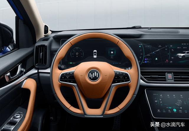 威马W6的内饰经过全新设计,采用三屏设计,12.3英寸全液晶数字仪表和12.3英寸旋转中控屏紧密相连,下方的8英寸i-Touch车控屏支持盲操,可以滑动控制空调风量、座椅加热等功能。三幅式方向盘被真皮打孔覆盖,握感优秀。座椅内部填充物柔软适中,支持六向调节,包裹性、支撑性和舒适性都很不错,相比于威马EX5,坐垫更长,腿部空间也更宽敞。