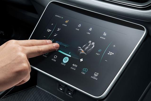其中,空调控制屏全靠触摸,没有物理按键。该车装备带有后排出风口和PM2.5过滤的自动+分区空调,中配以上车型还增加了空气净化器和负离子发生器。