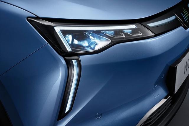 细节方面,它的日行灯很别致,不仅从前照灯往下延伸,左右之间还有光带相连,车标亦能随之点亮。