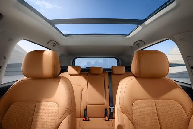 该车虽然也是流线造型,但车顶并没有急速下滑,因而保证了后部有足够高的空间。此外,全景天窗是全系标配,使车内显得很豁亮,有种开阔感。