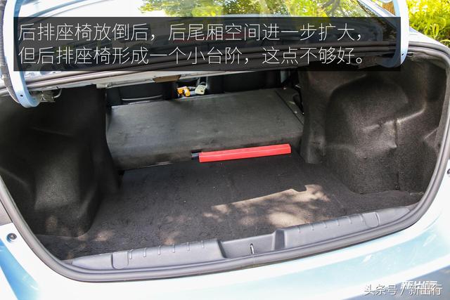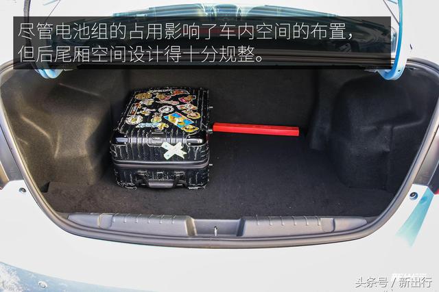 而后尾厢空间更是让人惊喜的地方,即使新车作为纯电动汽车搭载了大容量的电池组,虽然后尾厢空间稍有缩水,但空间布置显然经过静心的布置而显得十分规整,在后排座椅放倒后能获得更大的空间,但后排座椅此时形成一个小台阶,使两平面并不能连接,对特殊情况当然会造成一定的影响。