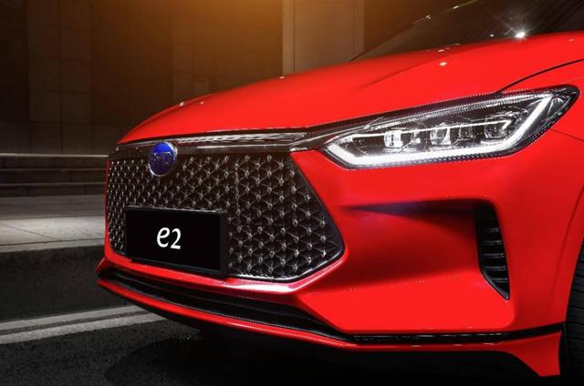 有趣的是,作为新能源车,比亚迪e2却采用了燃油车的六边形大尺寸点阵式进气格栅,与凌厉的头灯组融为一体。