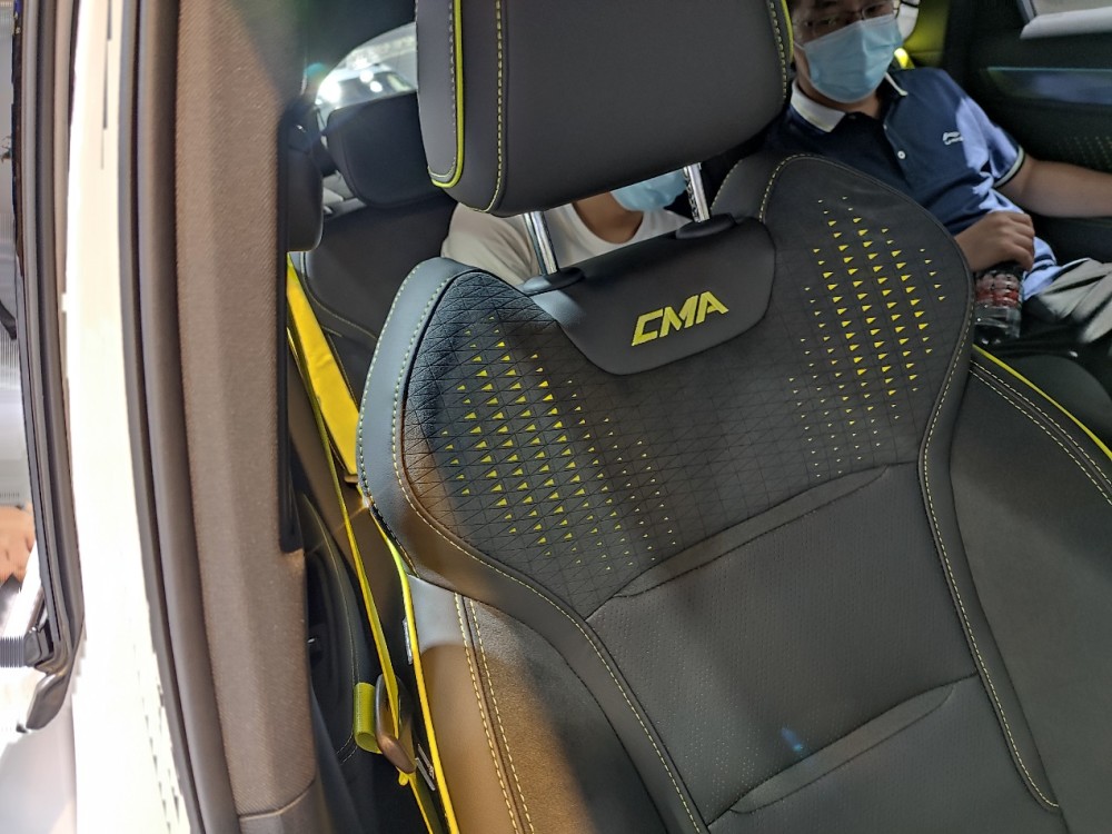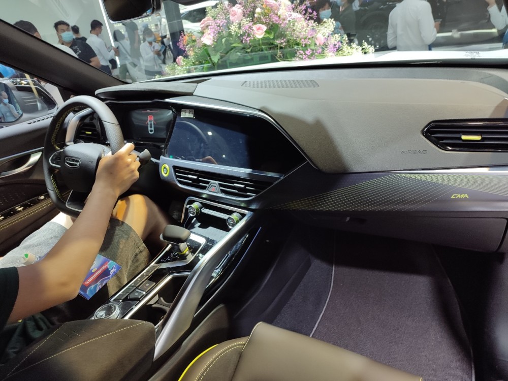 进入到车内,星越S设计对比老款基本保持一致,采用非对称式布局,整个中控台主体向主驾驶倾斜,营造出良好的包裹感。做工用料方面,车厢内部以黑色为主,不过扶手箱、门板等区域加入了翻毛皮材质,并且为了呼应外观的荧光绿装饰,车内同样加入类似的元素点缀,比如方向盘、安全带、座椅、挡把等区域,而且靠背位置还加入"CMA"的刺绣标识,将整台车活跃的气息再一次激发出来。