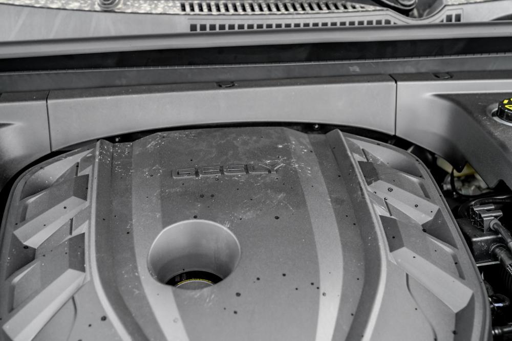 车尾带有一段小鸭尾,并且还加入一段黑色装饰,虽然没有使用时下流行的贯穿式尾灯设计,但内部使用多段纹理填充而成,夜晚点亮后有着相当不错的精致感。中间带有一段镀铬装饰进行相接,表面还带有"GEELY"英文缩写。下方同样带有尺寸的扩散器以及双边共四出的排气布局,颇显动感氛围。